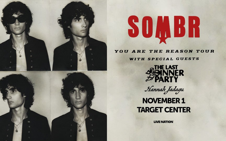 "12 to 12" and "back to friends" artist, SOMBR is bringing his "You Are The Reason" tour to Target Center with special guests The Last Dinner Party and Hannah Jadagu on November 1, 2026.