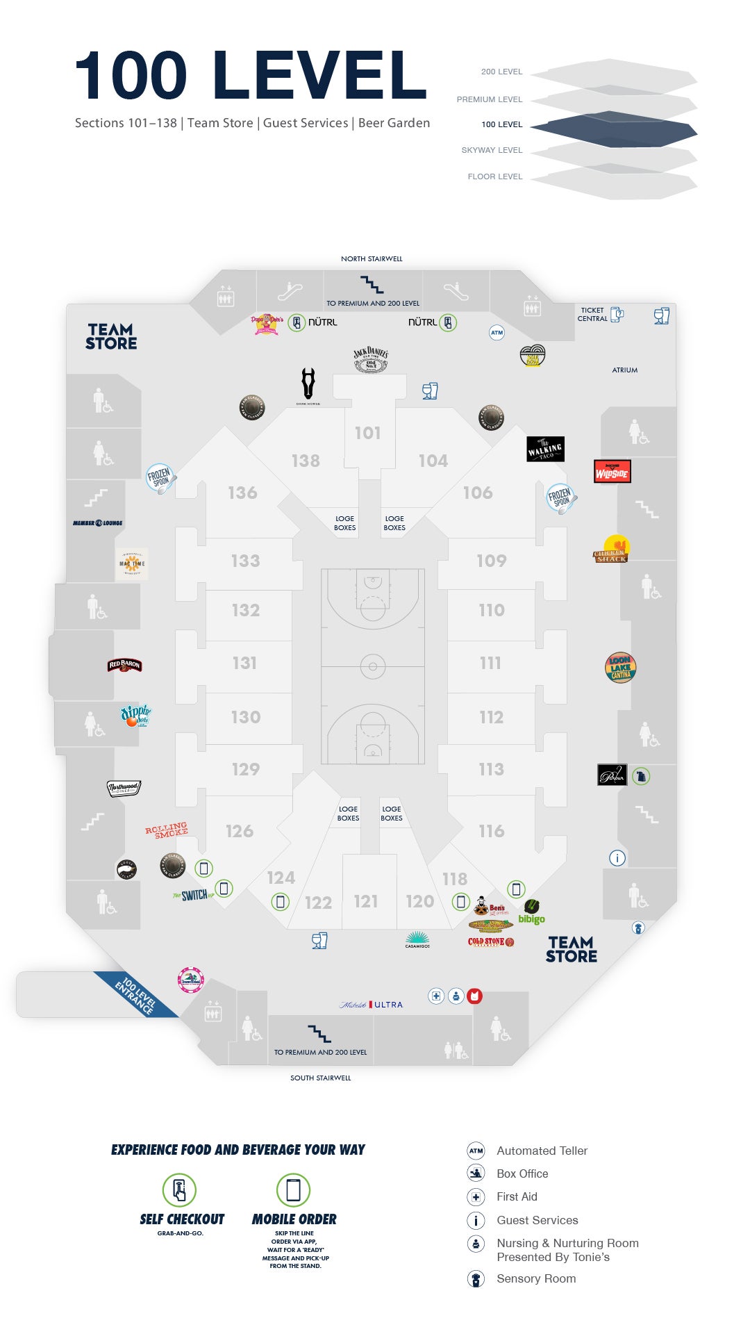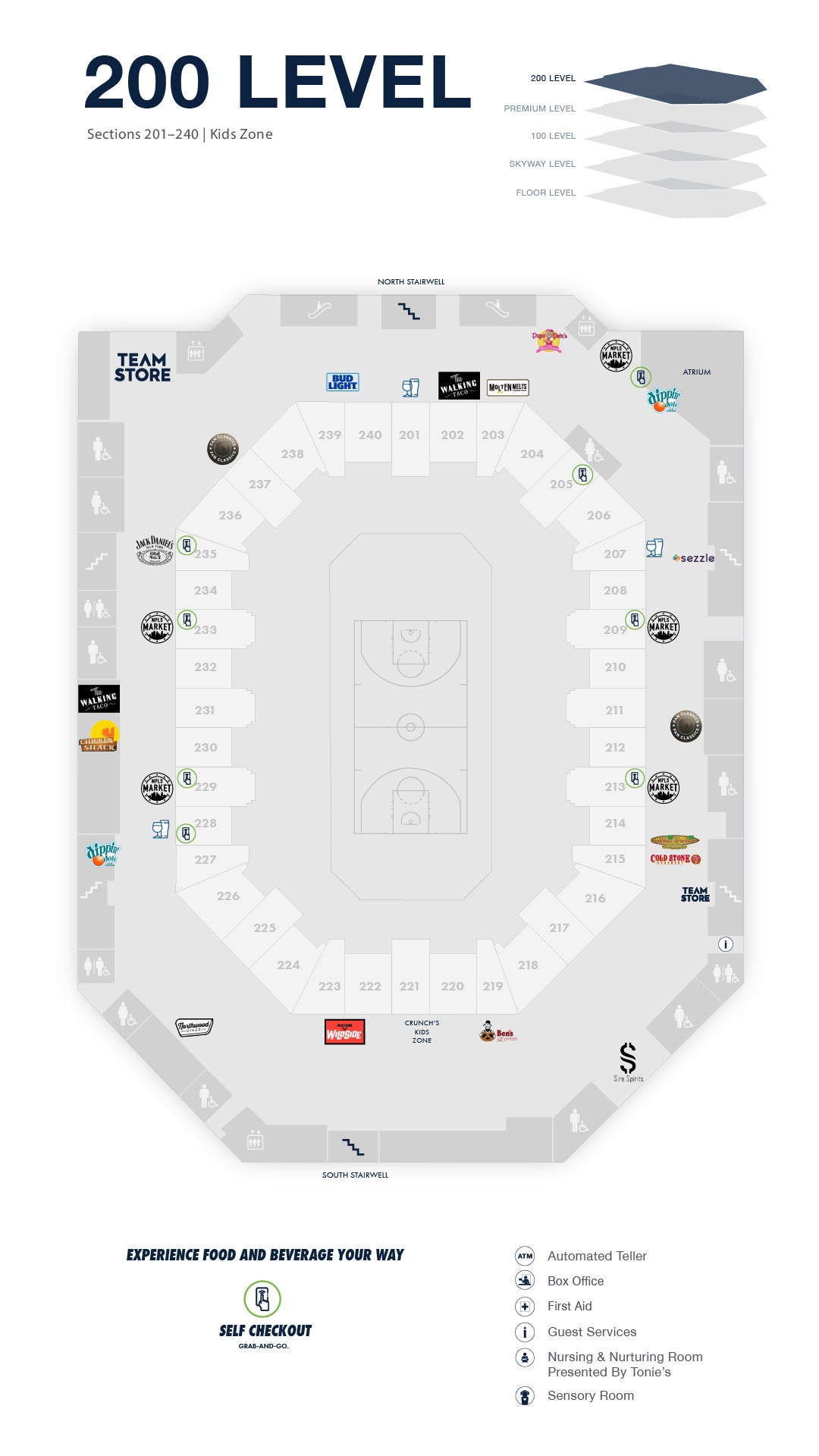 Specialty and premium food offerings, custom-developed culinary concepts and unique food and beverage destinations are available on all levels of the Target Center