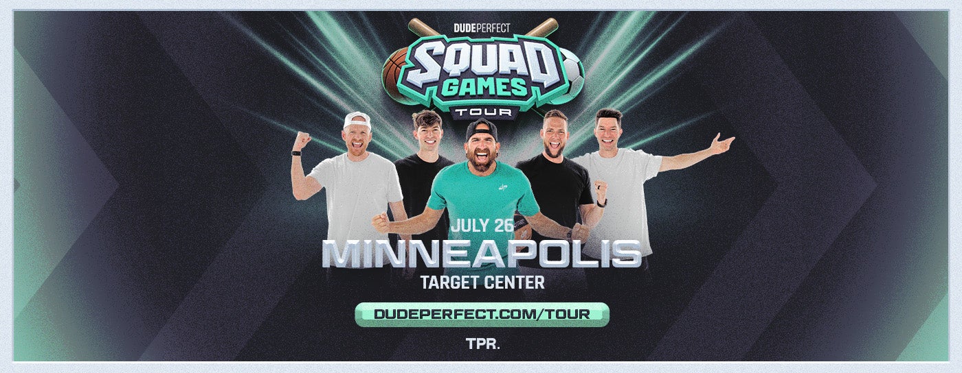 MINNEAPOLIS, MN (November 14, 2025) – After a record-breaking 2025 tour, Dude Perfect is taking live entertainment to the next level with the Squad Games Tour with an all-new 360-degree arena layout – just like your favorite sports matches. This summer, Dude Perfect will hit 22 cities across the U.S. for an action-packed night of competition, trick shots, and family fun, complete with new larger-than-life challenges and surprise guests along the way.